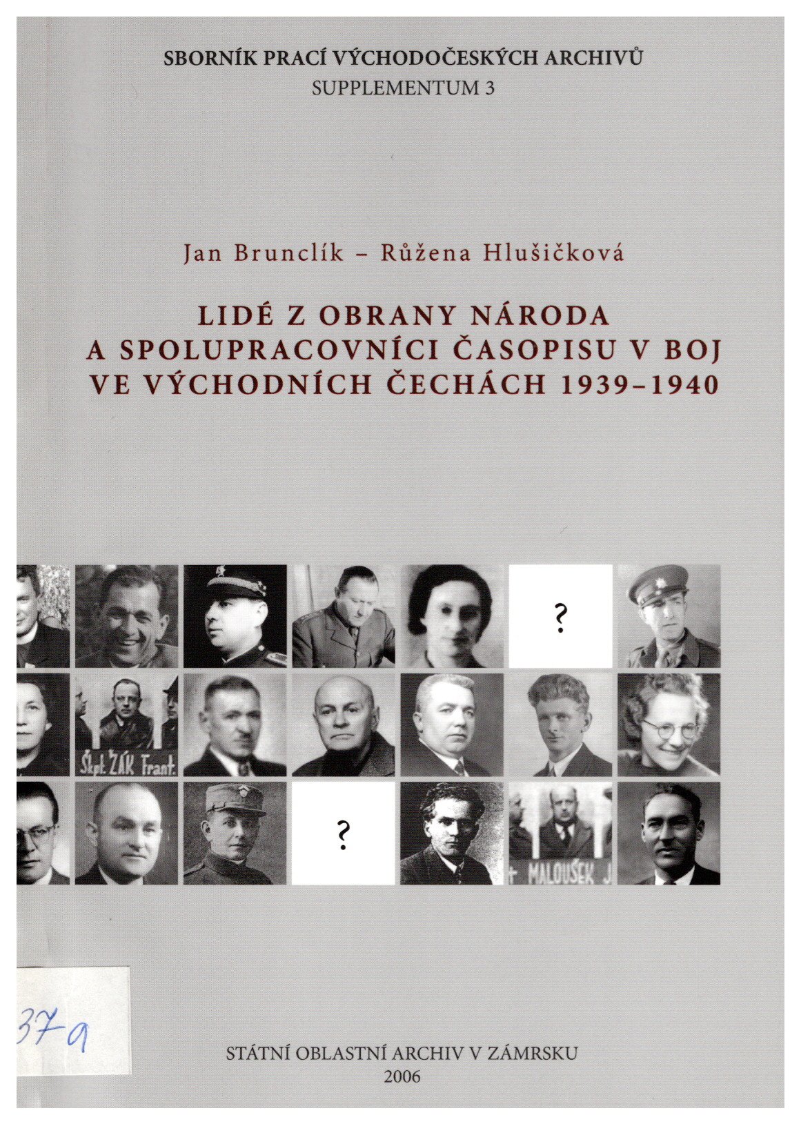 Sborník prací východočeských archivů, Supplementum 3 Lidé z Obrany národa a spolupracovníci časopisu V boj ve východních Čechách 1939–1940 Autor: Jan Brunclík, Růžena Hlušičková Vydavatel: Státní oblastní archiv v Zámrsku Místo vydání: Zámrsk Rok vydání: 2006 ISBN: 80-254-0458-7 ISSN: Cena: neprodejné